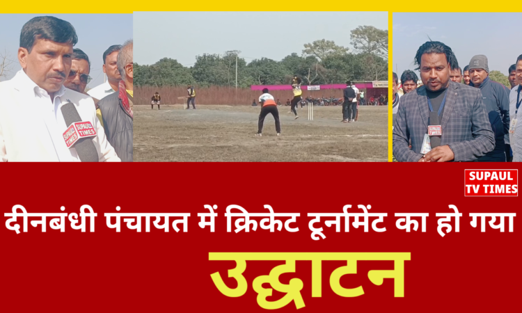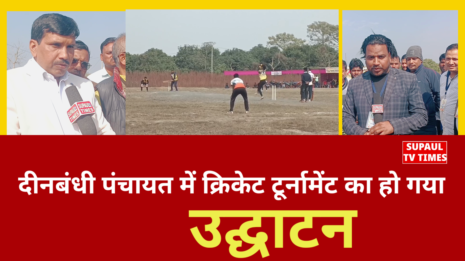 सुपौल जिले के बसंतपुर प्रखंड के दीनबंदी पंचायत में आज एक बड़े क्रिकेट टूर्नामेंट का उद्घाटन हुआ, ये क्रिकेट टूर्नामेंट लगातार 7 दिनों तक चलेगा , इसमें कुल 12 टीम हिस्सा लेगी, फाइनल जीतने वाले को 12000 और साथ में ट्रॉफी भी दी जाएगी, जबकि रनर को 16000 और ट्रॉफी दे जाएगी, आज इसका उद्घाटन राजद नेता डॉक्टर विपिन कुमार सिंह के हाथों हुआ, साथ में मुखिया अख़्तर साहब और कुछ बड़े गेस्ट मौजूद रहे।